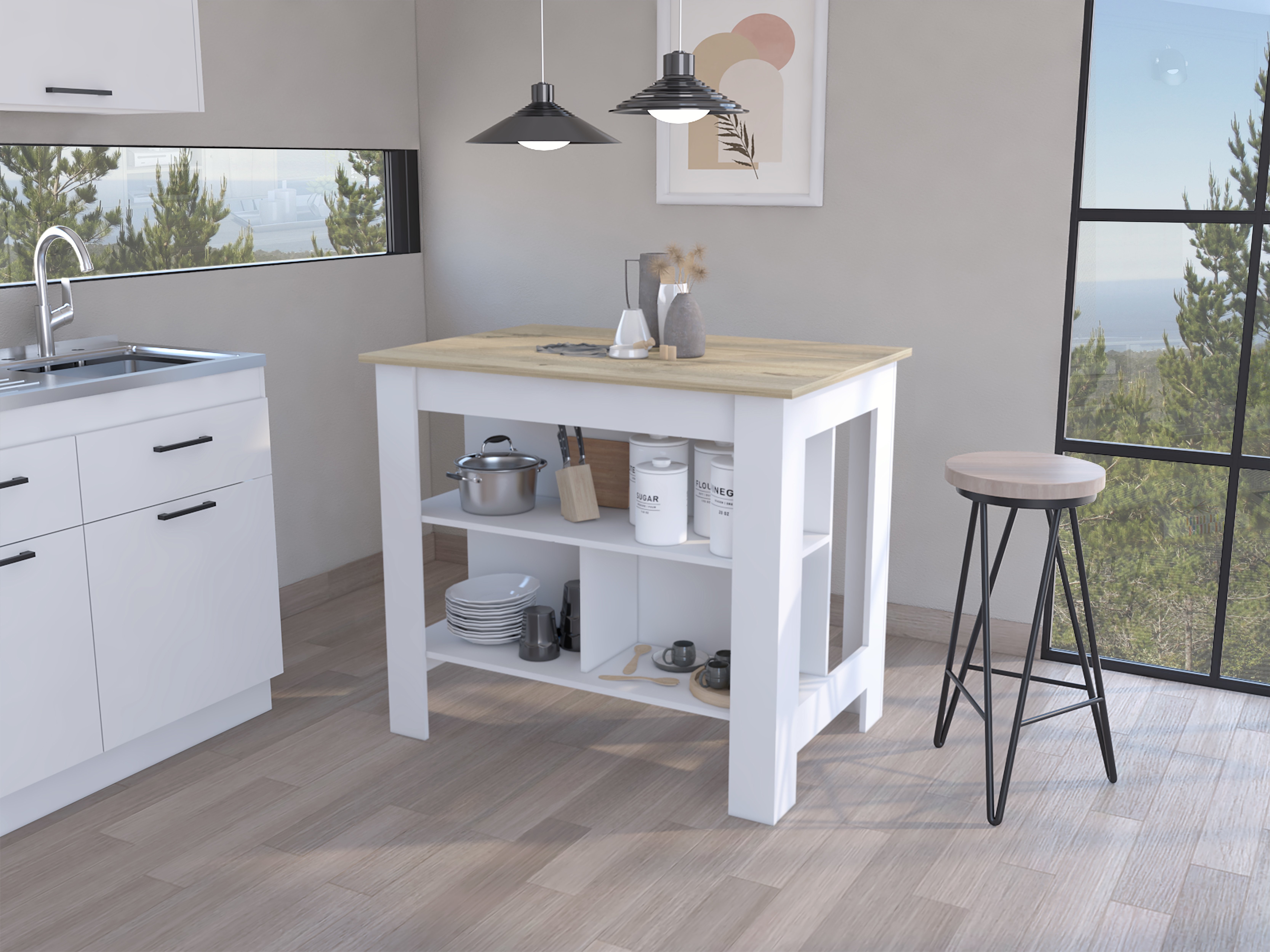 Rockaway 3-Shelf Kitchen Island White and Light Oak